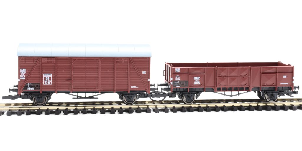 Tout d’abord deux nouvelles références de wagons à marchandises : une citerne actuelle (époque VI) en livrée ERR que l’on peut voir régulièrement sur les rails français; et un set de 2 wagons époque III de la DB, intégrés au pool Europ donc ayant circulé régulièrement sur les rails de l’hexagone.